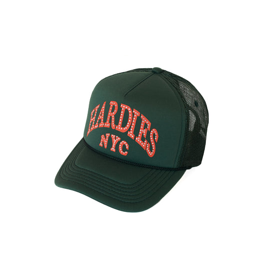 HARDIES NYC Rhinestone Pre Curve Trucker Hat - Green/Orange